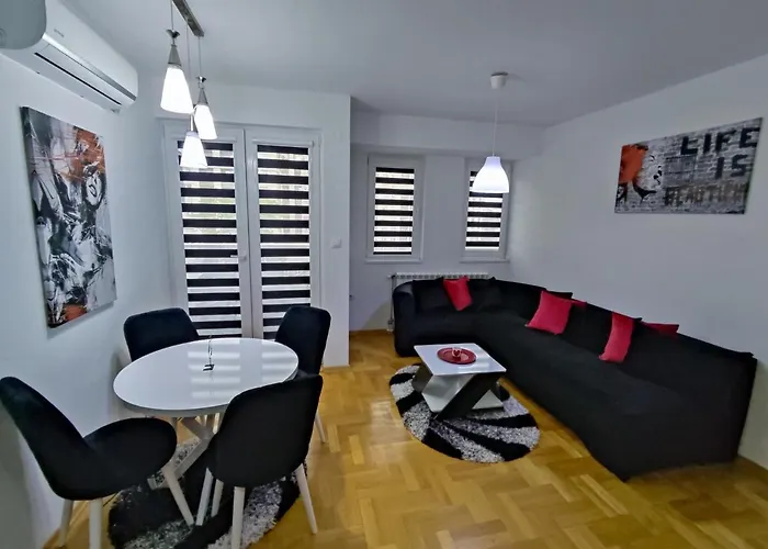 1-slaapkamer Bianco Rosso Apartment Skopje ligt op 2 km afstand van de Hammam Čifte. Het 40 m^2 grote appartement heeft een terras met de berg.